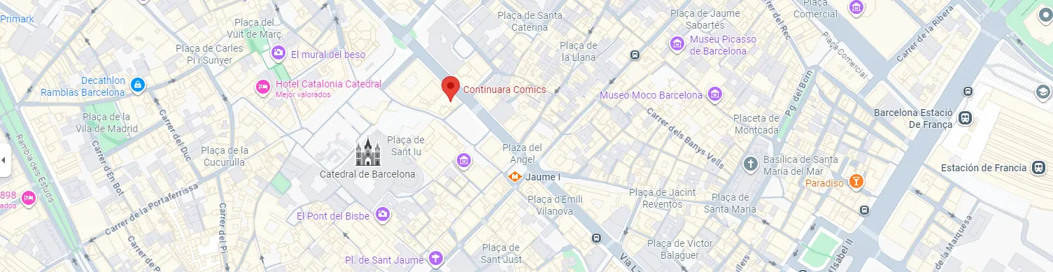 Continuarā Cōmics se encuentra en pleno corazón de la ciudad de Barcelona, en el emblemático barrio del Casc Antic. Nuestra tienda, ubicada en Via Laietana nº29, es una de las tiendas especializadas en cómic con más historia de la ciudad.